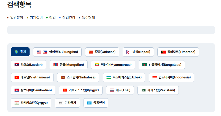 위의 링크에 들어가보시면 산업안전포탈 외국인자료실로 연결이 되고 위의 그림처럼 나라별로 자료를 활용하실 수 있도록 되어 있으니 현장의 관리자 분들께서는 업무에 잘 활용하시면 도움이 될 것으로 보입니다.