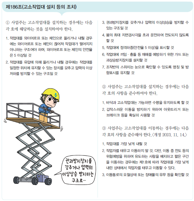 관련 법규 (산업안전보건기준에 관한 규칙 제 186조 외)