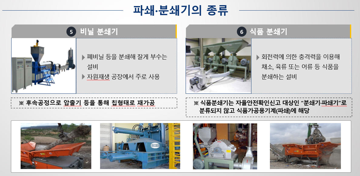 파쇄기 / 분쇄기에 대한 안전검사 적용 시점이 바로 내년입니다.