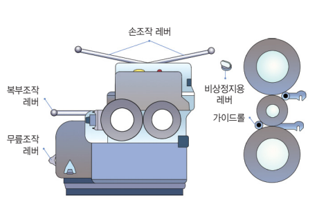 1) 급정지장치 : 롤러기에는 방호장치로 급정지장치를 설치해야 한다.