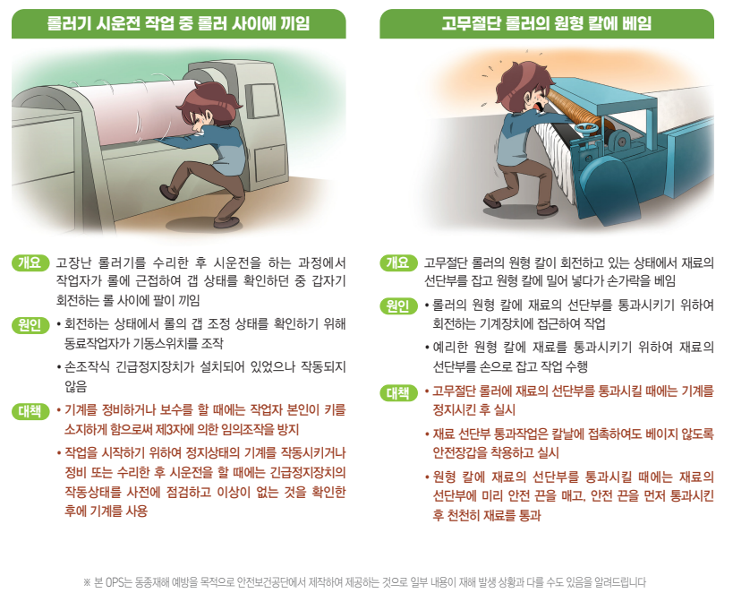 가. 롤러기에는 작업자의 신체일부가 롤러에 감겨 들어가는 것을 방지할 수 있는 급정지장치를 구비해야 한다.
