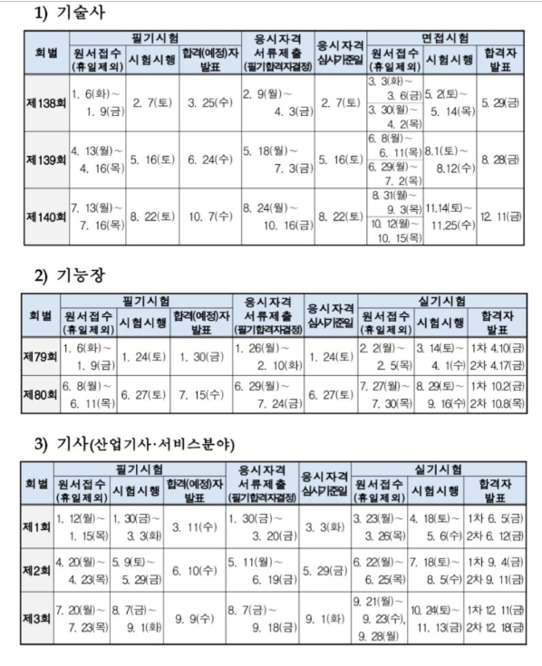 혹시 기술사나 기타 자격증 시험을 준비하고 계신 분들께서는 일정 참고하셔서 준비 하시면 좋겠습니다.